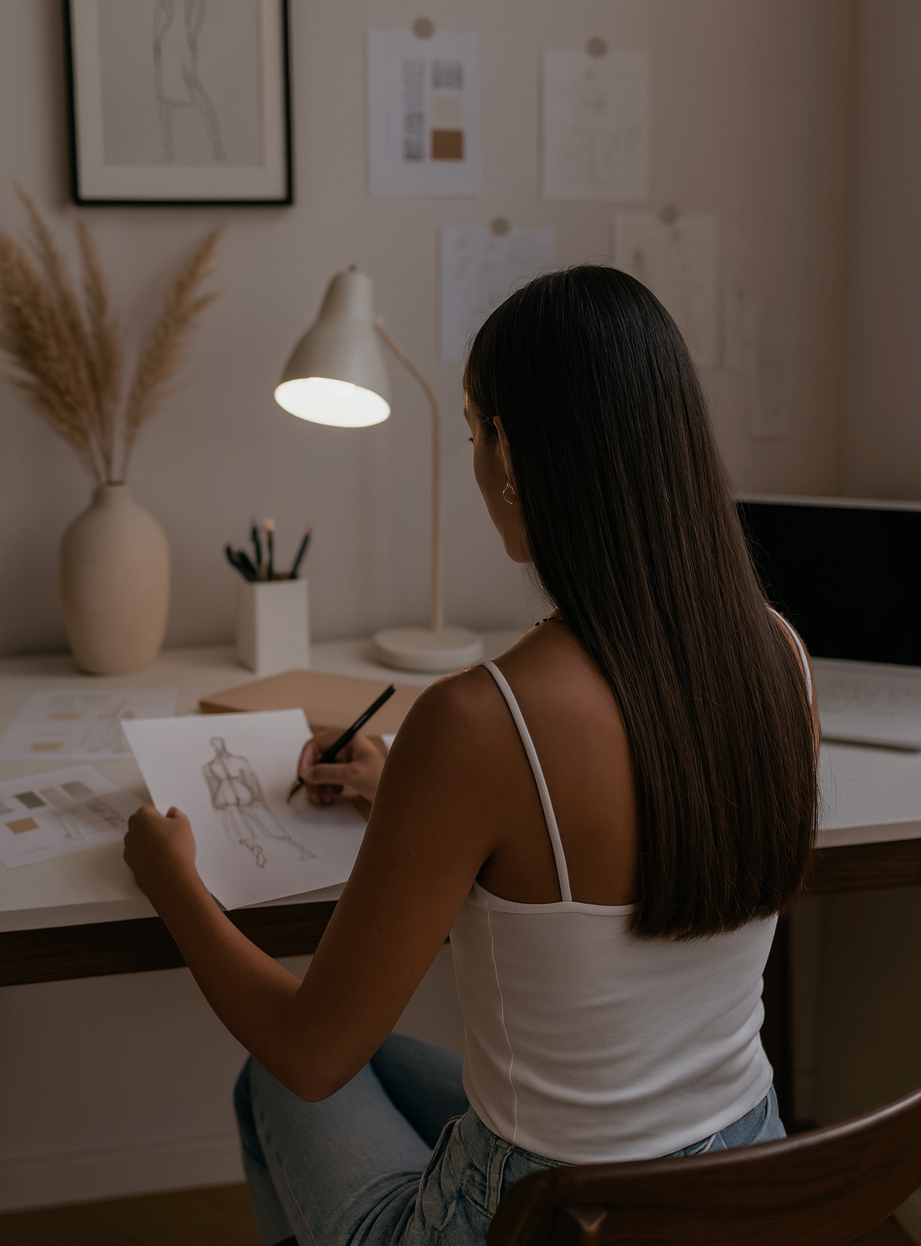 En tant que styliste, je vous accompagne dans la création de vos vêtements et accessoires.